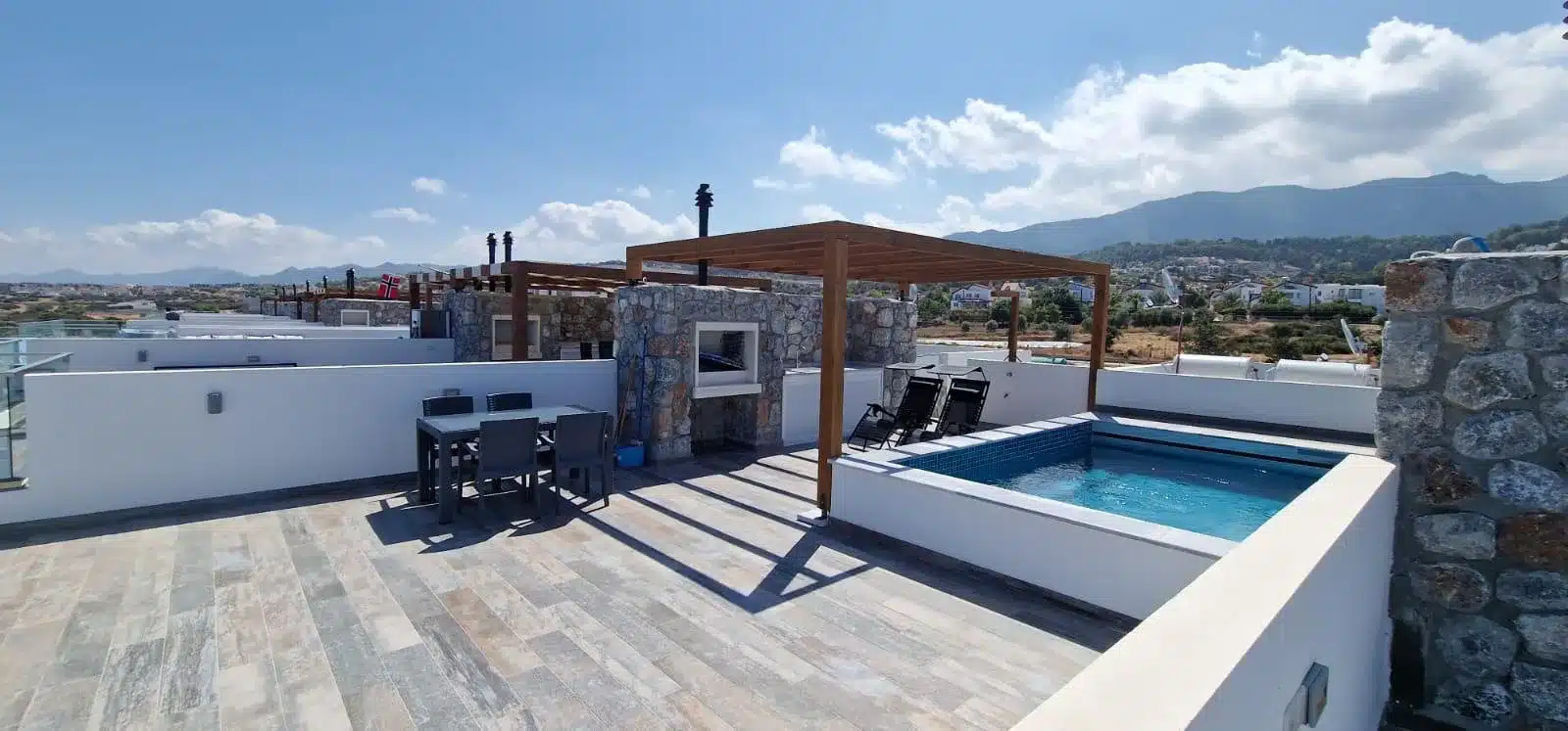 Die Immobilie liegt in Esentepe, einer der beliebtesten Küstenregionen Nordzyperns. Hier vereinen sich Natur, Ruhe und mediterraner Lifestyle. Das Penthouse in Nordzypern ist ein Erstbezug und bezugsfertig. Es beeindruckt durch seine moderne Architektur und eine große Dachterrasse mit privatem Pool.